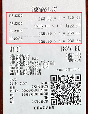 Меркурий 185Ф: Как пробить чек с несколькими позициями